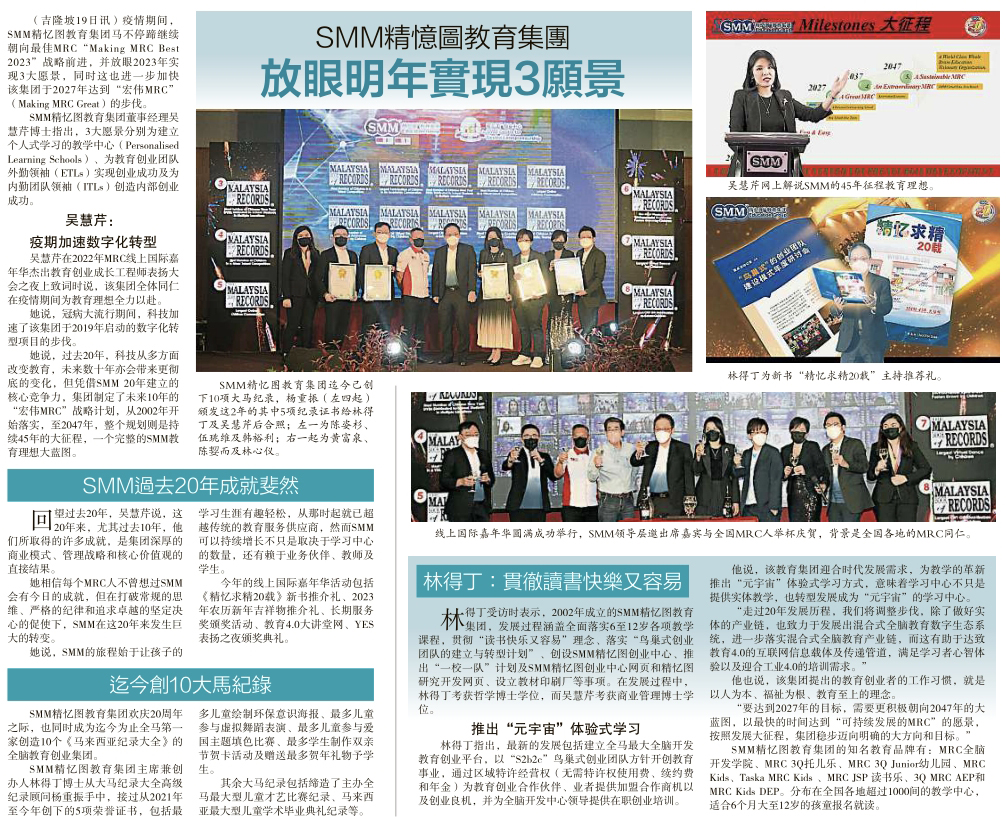SMM 精忆图教育集团,放眼明年实现 3 愿景